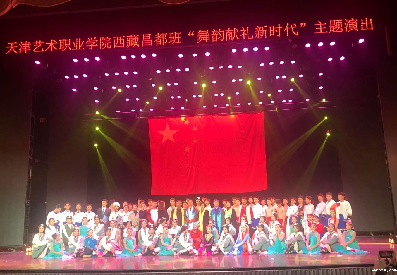 2019年11月12日,我院舞蹈系师生受邀与天津艺术职业学院在勒泰中心国际庄大剧院共同完成了庆祝中华人民共和国成立70周年系列活动——西藏昌都班“舞韵献礼新时代”主题演出。