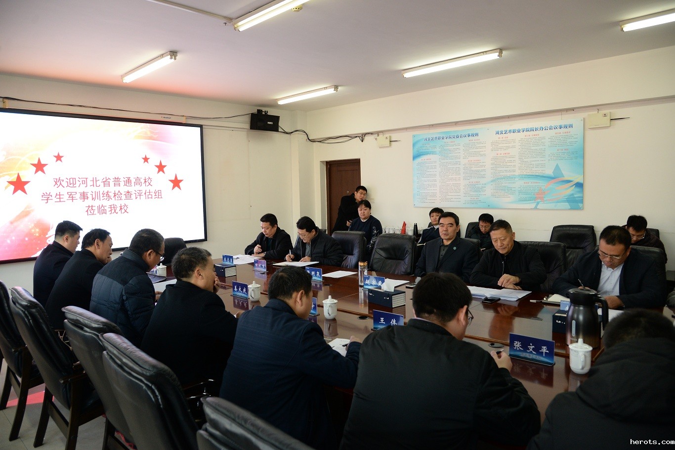 11月26日上午,以衡水学院副院长朱凯峰为组长的河北省普通高校学生军训调研指导组一行7人莅临我院检查评估国防教育和军事训练工作。学院党委书记赵宗更、副院长刘志欣接待检查组,学院军训领导小组成员单位负责人、军事教研室教师及各系负责人参加调研座谈会。