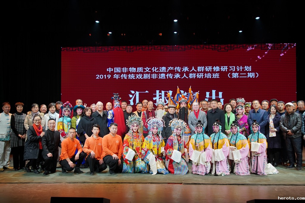 在深入学习宣传贯彻党的十九届四中全会精神之际,12月9日下午,文化和旅游部、教育部、人力资源和社会保障部中国非物质文化遗产研修研习培训计划——2019年传统戏剧非遗传承人群研培班(第二期)结业仪式暨汇报演出在学院四楼剧场隆重举行,演出结束后召开了专题座谈会,我院党委书记赵宗更参加座谈。河北省文化和旅游厅非物质文化遗产处处长张雪芳、学院党委副书记延凤宇为结业仪式致辞并参加座谈。河北省人民政府外事办公室亚非处调研员纪红、综合处柳青,河北省京剧艺术研究院院长李平芳、石家庄市演艺有限公司董事长杜学瑜、石家庄市丝弦剧团团长吴合利、赞皇县人民政府副县长蔡占军,省非遗保护中心、赞皇县有关部门、单位领导,学院教学督导委员会副主任、研培项目组艺术指导李建锁以及授课专家,参加本次研培的赞皇县丝弦剧团30名学员,学院部分师生参加活动。