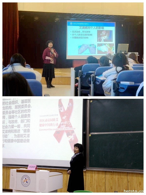 11月27日、12月4日学院邀请市疾控中心刘淑君主任来校举办了两期防艾知识专题讲座。
