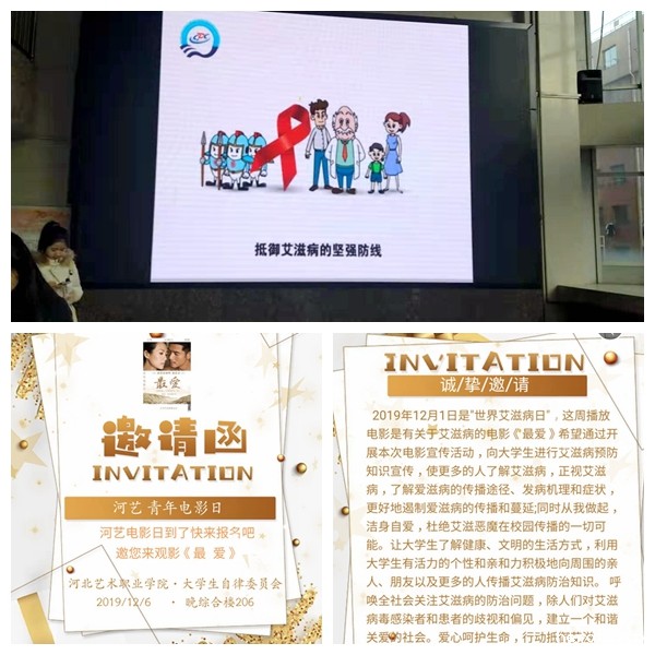 通过校园大屏幕播放艾滋防治宣传片,大学生自律委员会在“18luck新利官网登陆青年电影日”播放艾滋主题影片。