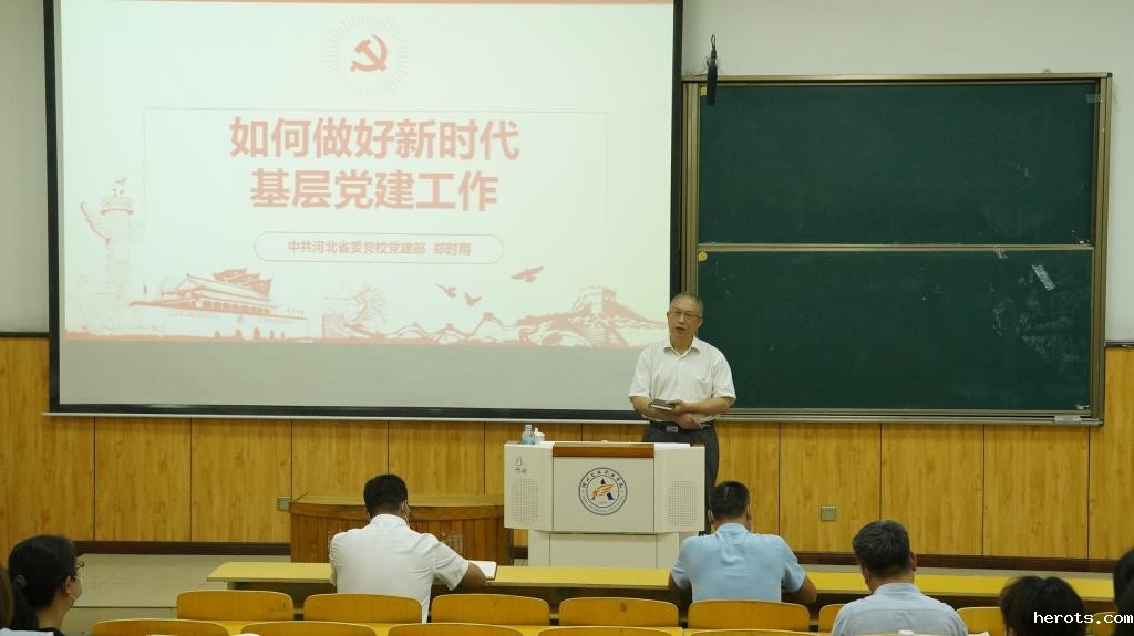 为贯彻落实习近平总书记在中央和国家机关党的建设工作会议上的重要讲话精神,切实推动全面从严治党向基层延伸,不断提高党支部建设质量,把党支部建设成为宣传党的主张、贯彻党的决定、推动事业发展的坚强战斗堡垒,我院于6月3日下午邀请河北省委党校郑时雨老师来院作题为“如何做好新时代基层党建工作”的专题讲座。各党支部书记、专职副书记及支部委员现场聆听讲座。讲座活动由党委副书记张国明主持。
