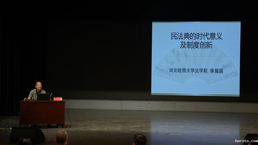 柴振国教授的讲座以《民法典的时代意义及制度创新》为题,从民法典的编纂历史、民法典的时代意义、民法典的中国特色、民法典的制度创新四个方面阐述了“民法典的时代意义及制度创新”,并从十个方面进行了深入分析:人格权独立成编,强化人格保障;加强对农民土地财产权的保障;加强对业主权利的保障,规范物业服务行为;加强弱者保护,彰显人文关怀;完善合同制度,优化营商环境;明确科技时代的权益保障和行为规范;融入环保理念,加强生态环境保护;形塑和睦家庭,保障家庭权益;完善继承制度,保障家庭财富传承;明晰侵权责任,实现公平正义。