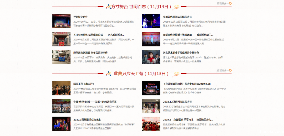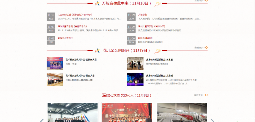 气势恢宏的影视剧作、潜心育人的生动故事、别具匠心的艺术新品、卓有成效的教改模式、感人至深的抗疫事迹、琳琅满目的荣誉展示……11月8日至14日,18luck快乐彩按照省教育厅职业教育活动周统一安排部署,聚焦“人人出彩,技能强省”的主题要求,在学院官网上开展了形式多样、内容丰富多彩的宣传活动,集中展示学院职业教育改革发展重要成果,进一步提升了学院的知名度和社会影响力。
