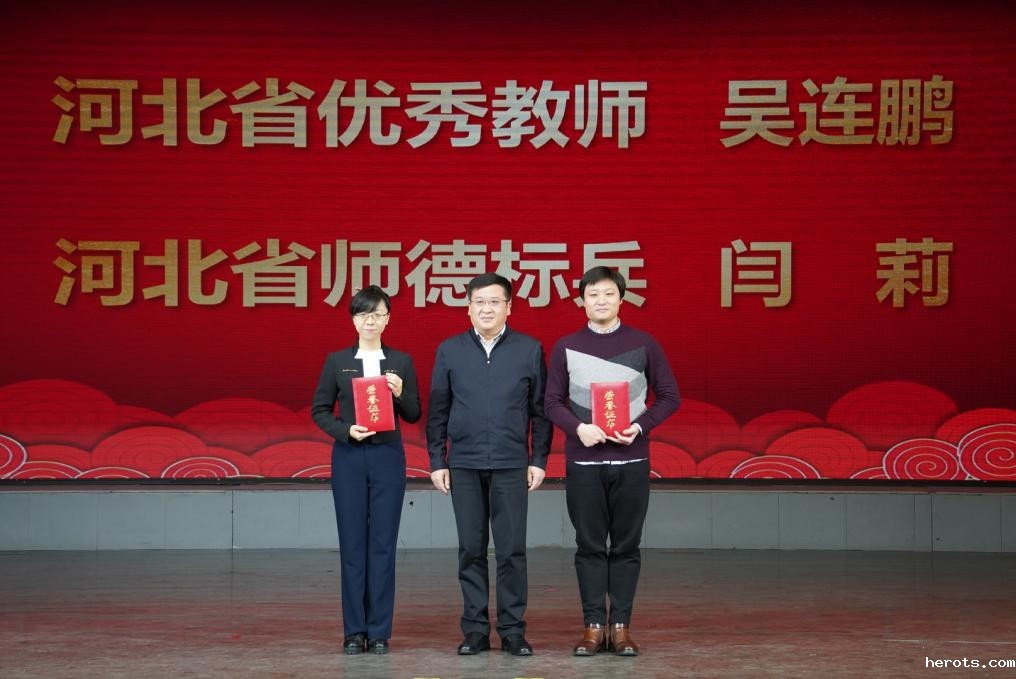 大会在雄壮的国歌声中拉开帷幕。大会首先表彰了2020年河北省“互联网+”大学生创新创业大赛获奖指导教师、省级先进班集体辅导员、省职业院校教师技能大赛教学能力比赛获奖教师、河北省优秀教师、河北省师德标兵及学院驻丰宁满族自治县老虎沟门村工作队和队员,院领导分别为获奖教师代表颁发了荣誉证书。