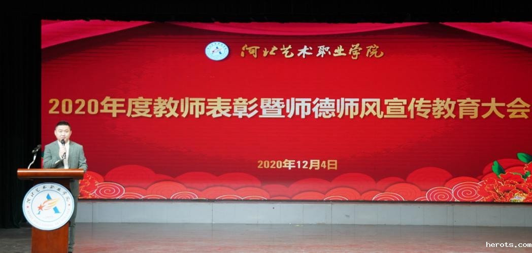 2020年12月4日,18luck快乐彩四楼剧场隆重召开2020年度教师表彰暨师德师风宣传教育大会。党委书记赵宗更、院长蒋国新等在院领导,以及200余名教师代表出席会议。