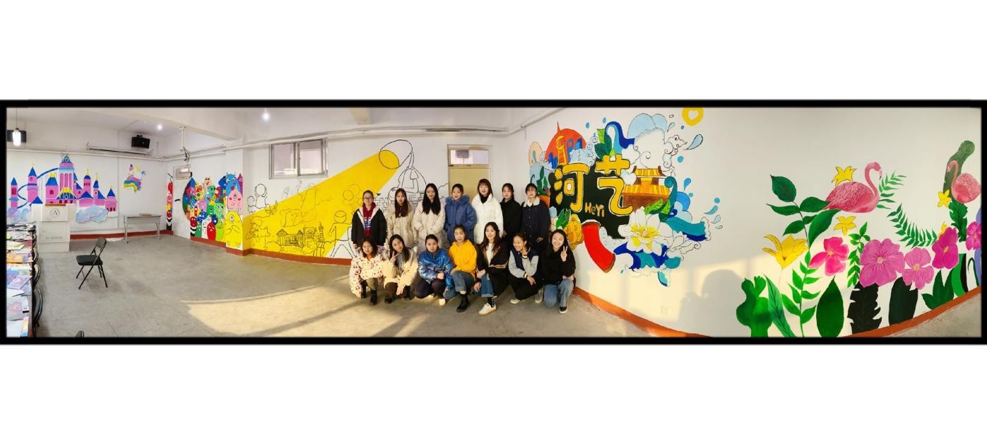 墙绘作品由19级美术特长班的同学们利用课余时间完成,他们自由创作,为校园增添了青春活力。大一新生由辅导员组织逐班参观,得到了极大的激励。