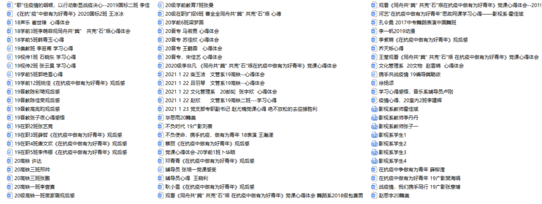 赵书记的思政大课引起了广大师生的强烈反响,1月22日当晚,收到全校师生心得近百篇,学习通等平台留言近千条。学工部长郝端勇写了题为“行百里者半九十——全力配合疫情防控工作”的心得;思政老师王伯然在心得中表示“疫情期间,思政老师一定将责任扛在肩,时刻关注学生的思想动态,引导学生跟着党走、勤于学习、守好规矩、牢记使命”;美术系辅导员张培、王晓利、舞蹈系辅导员王莹、戏剧系辅导员杨家祥听了赵书记的课后,一致认为:作为辅导员,一定恪尽职守,落实落细本职工作,做学生的知心朋友;同学们也通过心得、留言的方式纷纷表示:“听了赵书记的课后倍受鼓舞,努力争做有理想、有本领、有担当的好青年”。