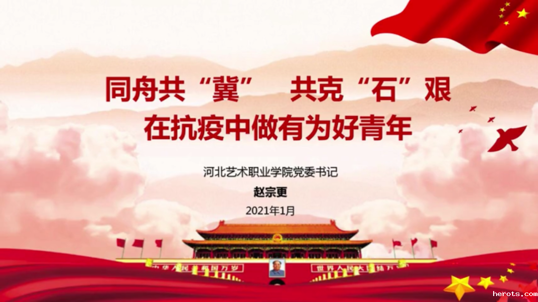 自1月2日河北省石家庄市发现首例新冠肺炎感染病例以来,截止1月22日18时,全市累计报告新冠肺炎本土确诊病例822例。目前,全省疫情防控形势总体向好,但疫情还没有完全见底,仍然存在着不确定性和传播的风险。我院除少数学生因准备升学考试、实习等原因滞留石家庄外,绝大多数已在2020年12月20日放寒假回家,有100余名师生处于中高风险地区。在疫情防控的关键阶段,为激励广大18luck新利官网登陆师生弘扬抗疫精神,积极投身于疫情防控歼灭战,1月22日晚上,赵宗更书记以《同舟共“冀” 共克“石”艰 在抗疫中做有为好青年》为题,为全体师生讲授了一堂线上思政课。省内外18luck新利官网登陆师生将电脑、手机屏幕调整为同一画面,共同聆听了党委书记赵宗更的思政课。