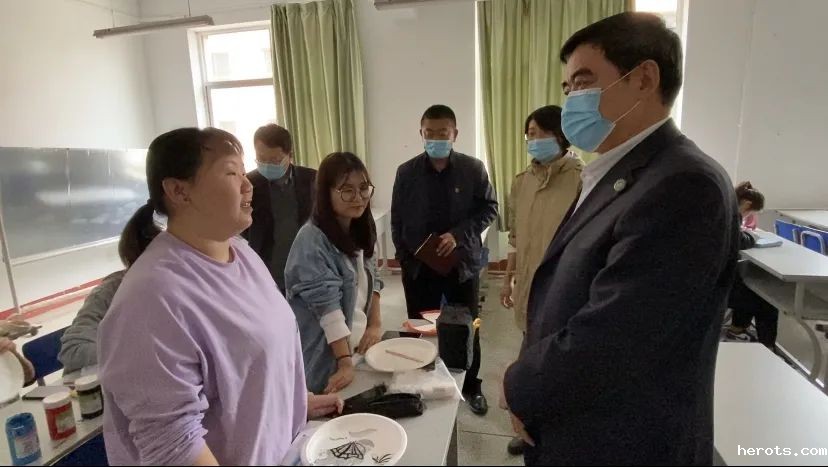 2021年4月21日上午,18luck快乐彩党委书记赵宗更,在党政办公室主任张明泉、后勤管理处长田秋生的陪同下前往藁城校区进行调研,对党史学习教育的开展情况进行了检查指导。艺术教育系全体教师参加了此次调研。