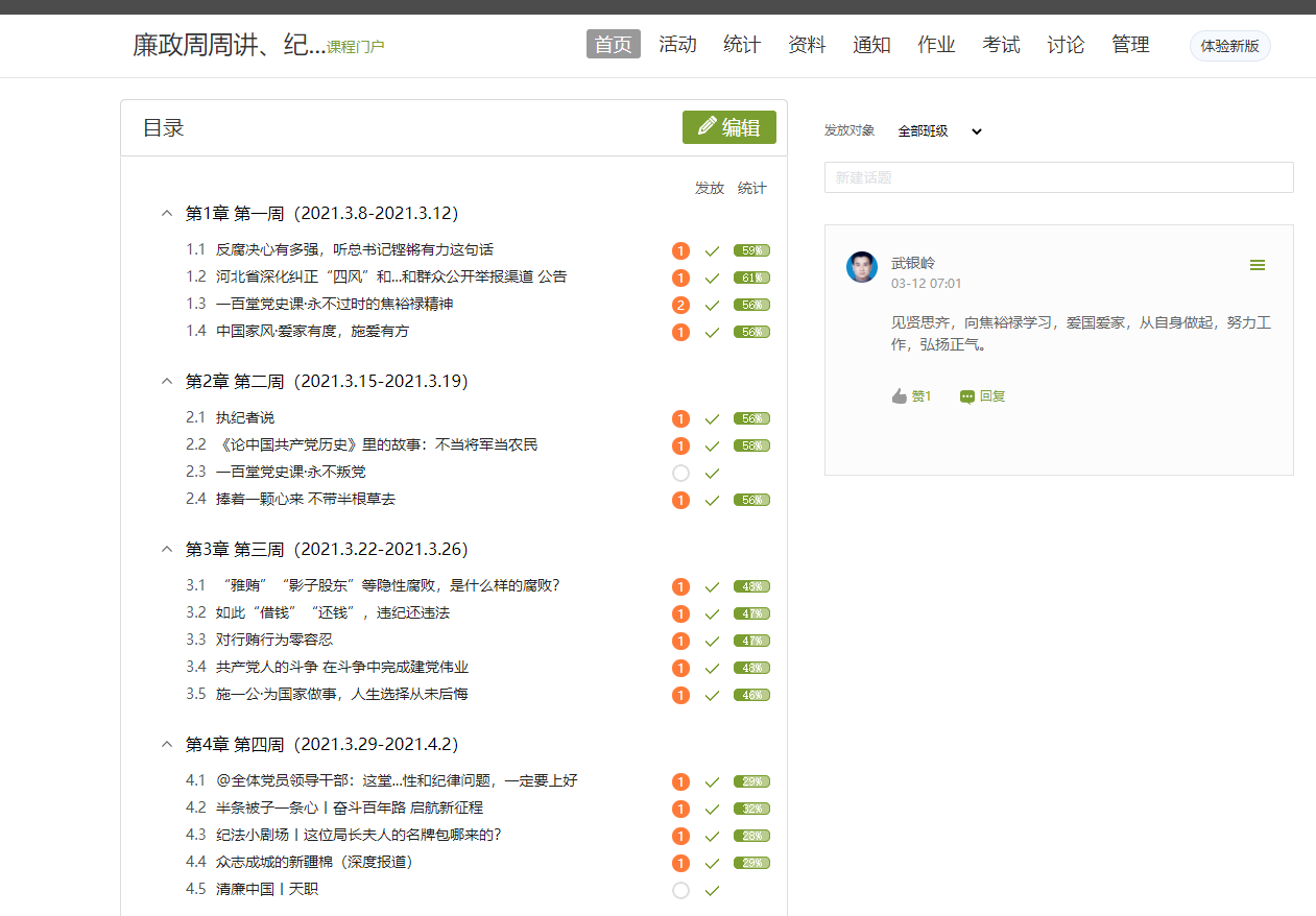 依托党史学习,加强信念教育。家风是百年党史中恒久的话题,学院纪委在开展廉政教育过程中,注重将党史中的优良家风当成“红色养料”,传承红色基因。在“廉政周周谈、纪律周周讲”课程中,上传了甘祖昌、龚全珍夫妇的事迹、中国科学院院士·西湖大学校长施一公先生的专访等资料,引导党员干部感悟“红色”家风中蕴藏的精神力量,加强理想信念教育。