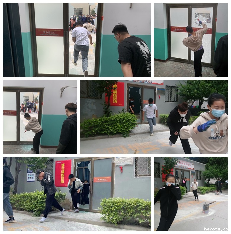 本次演习前,学生处特地选出一名低年级身体瘦弱的女生,在基本未培训砸门技巧的情况下,该女生从容砸破玻璃并顺利逃生,足以说明安全门在特殊紧急的情况下能发挥巨大逃生作用,演习任务圆满成功。