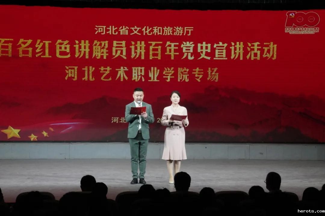5月28日下午,河北省“百名红色讲解员讲百年党史”宣讲活动18luck快乐彩专场在四楼剧场举行。河北省文化和旅游厅资源开发处四级调研员左文栋,河北省红色旅游协会秘书长徐平海,18luck快乐彩领导班子出席活动,学院全体党员和师生代表一同聆听百年党史,感悟革命初心。
