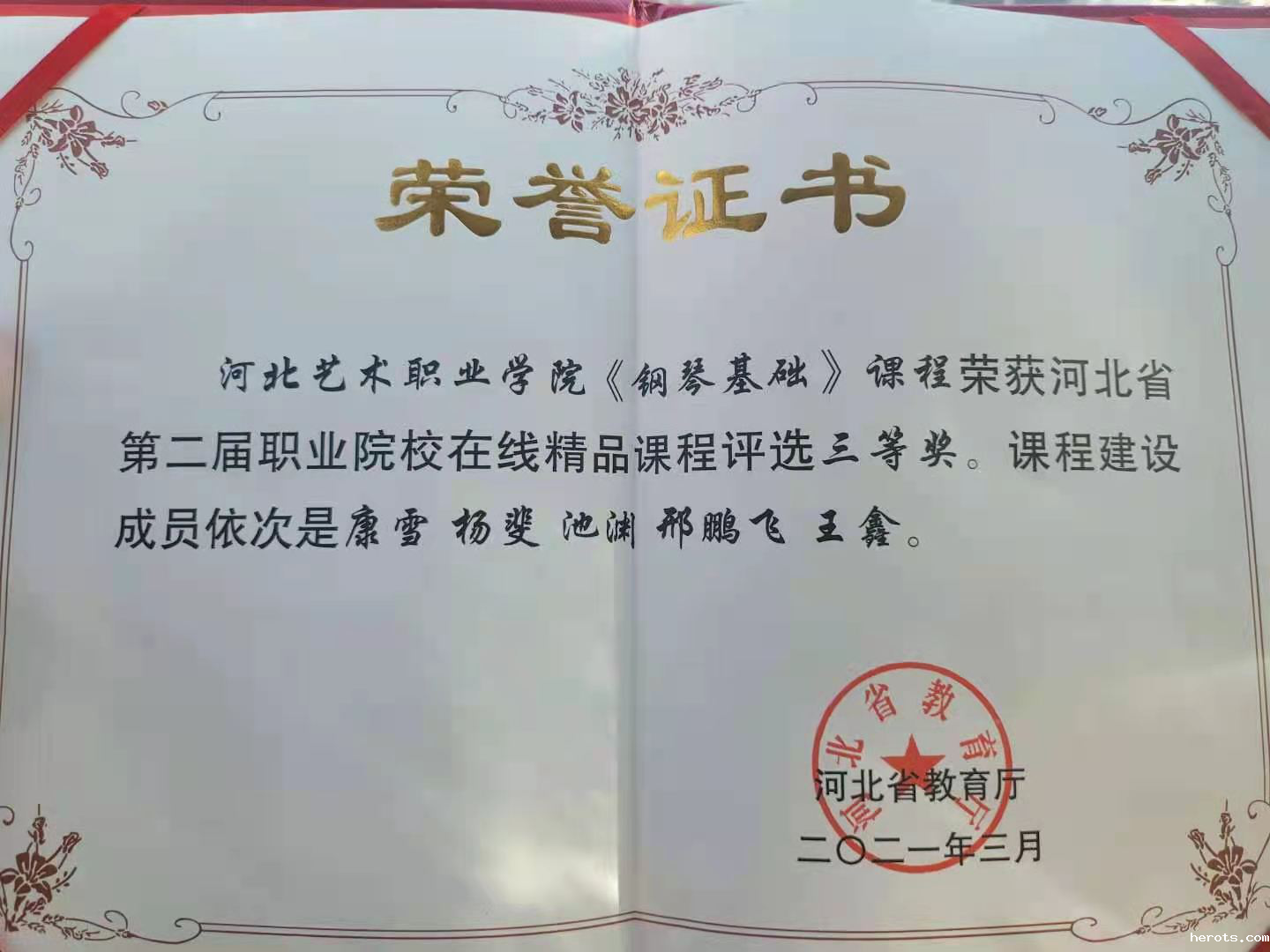 康雪老师主讲的《钢琴基础》课程获三等奖