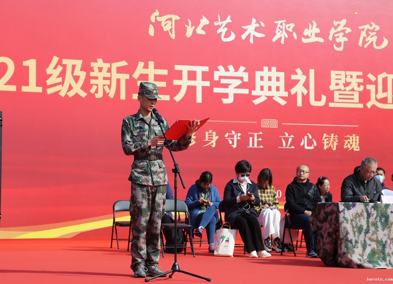 2021年10月7日,我院圆满举办2021级新生开学典礼暨国防教育总结表彰大会。学院党委书记赵宗更、院长蒋国新,党委副书记张国明、副院长延凤宇以及学院党政部门、系部负责人出席活动。张国明副书记主持活动。2021级新生辅导员以及来自河北、黑龙江、广东等9省市的1565名新生参加活动。
