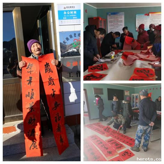 临近年关,村里筹备过年的氛围越来越浓,蒋院长特意带了学工部书法爱好者孙聘东同志,现场免费为村民撰写春联。村民们都主动围到村部,从蒋院长手中接过了一副副喜庆的红春联。