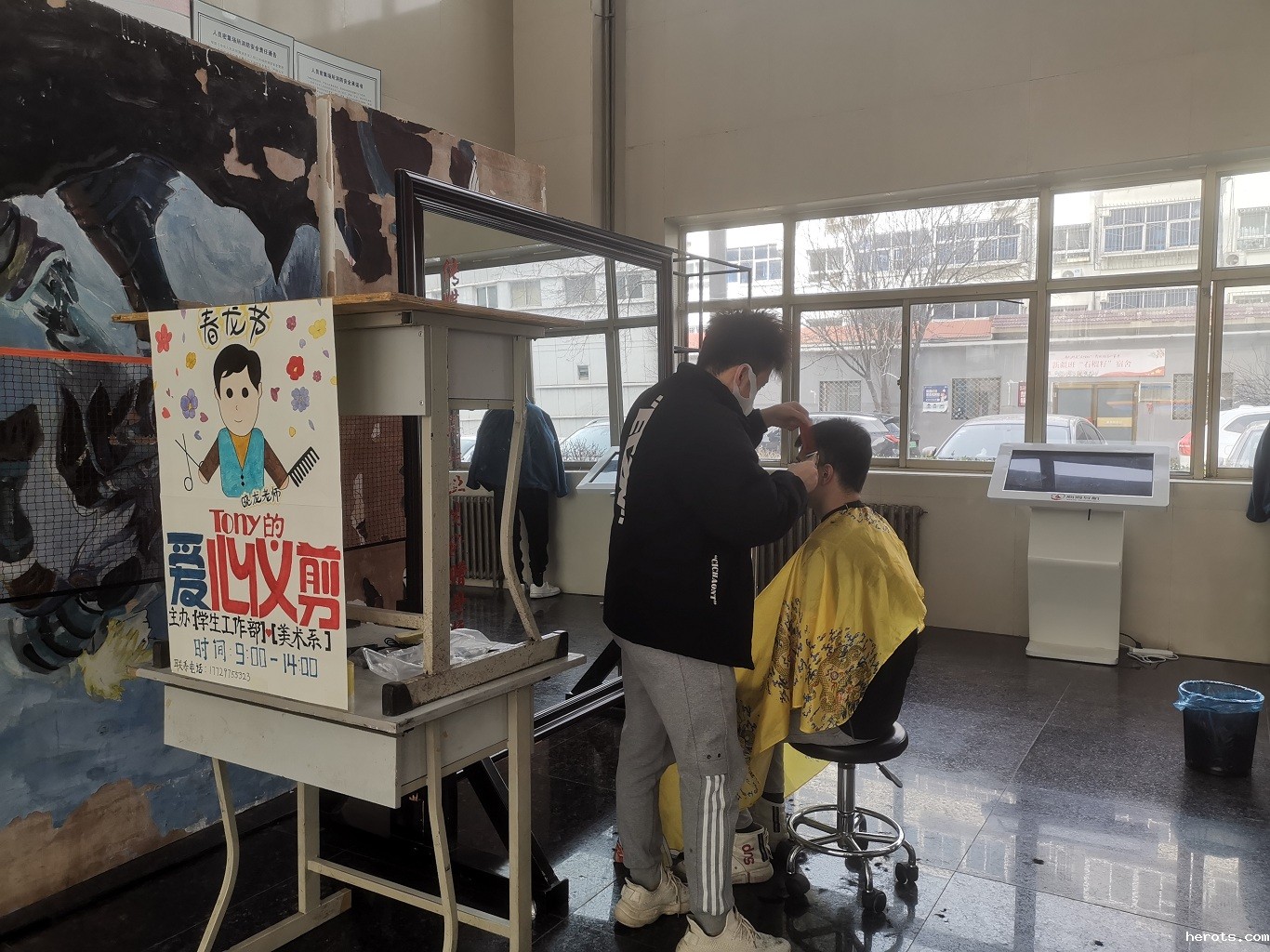 为避免师生理发时聚集,本次活动地点选在阳光充足、通风良好的综合楼一楼大厅,采取预约错峰理发的方式进行,确保志愿活动在疫情防控落实到位的情况下顺利开展。