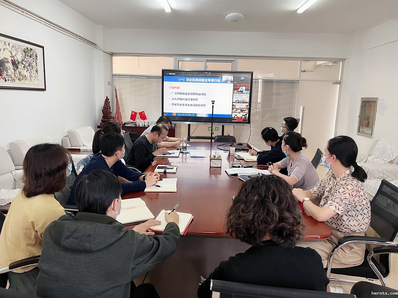 我院就业工作推进会在视频会结束后随即召开。金暄副院长在会上强调,就业工作是根基工程,我们要认真贯彻落实教育部视频会议精神,学习借鉴兄弟院校经验做法,夯实就业工作一把手工程,开展“访企拓岗”促就业行动,完善招生、人才培养、就业工作联动机制,做好重点群体帮扶建立台账,全力做好2022届毕业生就业工作。招生就业指导处副处长丁欣欣针对2022届毕业生就业进展情况进行了通报,分析了学院当前就业工作的优势、重点和难点,对做好下一步就业工作提出了工作建议。