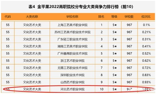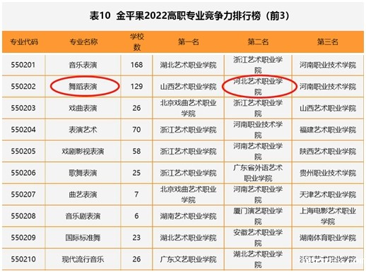 5月下旬,“金平果”中国科教评价网2022年高职专业群综合竞争力评价数据正式发布,我院在高职院校分专业大类竞争力排行中,位居文化艺术大类第十名(在全国同类院校中位居第三名,仅次于浙江艺术职业学院和山西艺术职业学院);在舞蹈表演专业竞争力排行榜中位居第二名。