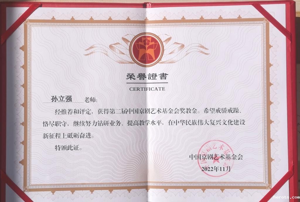 近日,18luck快乐彩戏剧系教师孙立强参加“第九届艺术院校京剧中青年教师教学交流展示”活动,并经中国京剧艺术基金会评定喜获基金会奖教金。