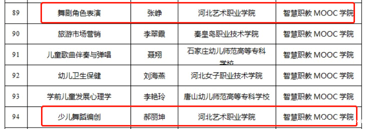 为进一步落实《关于开展2022年职业教育国家在线精品课程遴选工作的通知》要求,学院精心组织主题培训与专家评审工作,先是在省级精品在线课程中遴选,经专项主题培训、申报材料提交、专家评审等环节,推荐了2门更能体现18luck新利官网登陆办学特色、育人质量、示范引领的课程报送省教育厅;后经省教育厅组织评审,《舞蹈角色表演》《少儿舞蹈编创》课程顺利获得国家在线精品课参评资格;又通过反复打磨、不断优化、再次提升,2门课程最终成功入选。