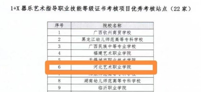 为深入贯彻《国家职业教育改革实施方案》精神,全面落实《关于在院校实施“学历证书+若干职业技能等级证书制度试点方案”》工作要求,“器乐艺术指导”在2020年底被正式列入教育部第四批职业教育培训评价组织和职业技能等级证书的公示名单,学院音乐系发挥专业优势,从站点建设、考核培训、课程改革、教学资源库建设等多方面积极开展工作,于2021年10月成功申报第一批“1+X器乐艺术指导职业技能等级证书”考核站点。2022年,音乐系组织了两次器乐艺术指导职业技能等级证书考试,共有75名学生参加考试,通过率97.3%,为进一步开展1+X证书培训积累了丰富经验。