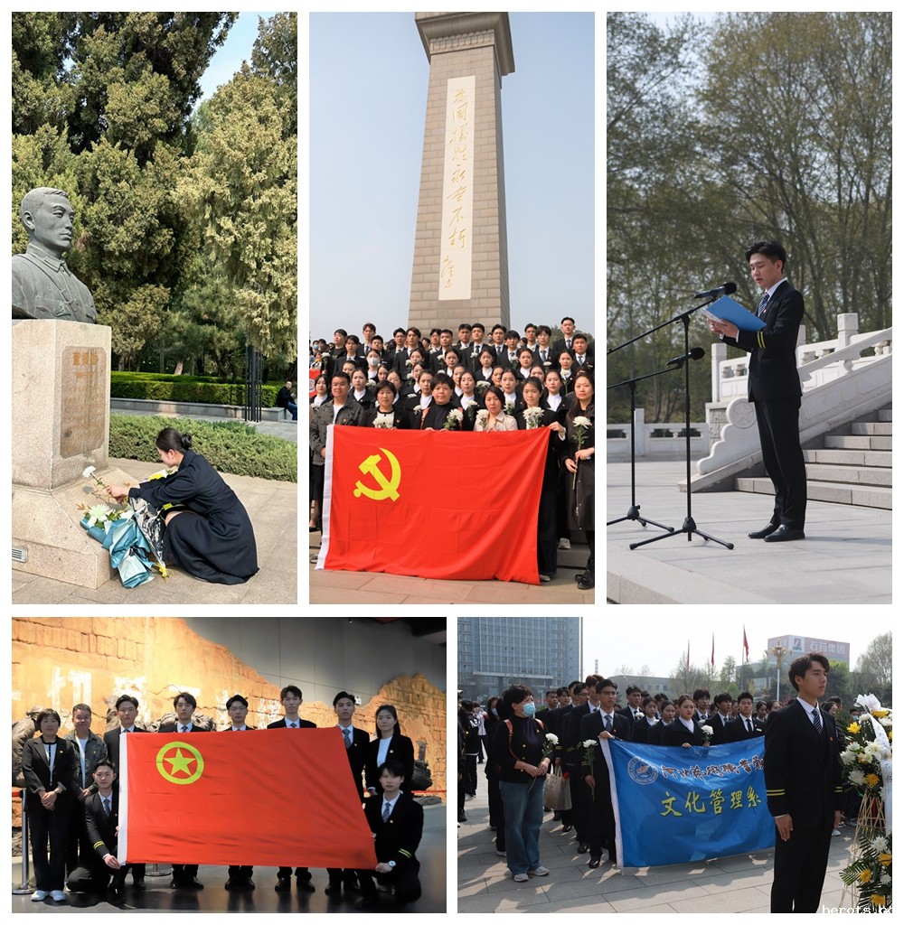 清明将至,翠柏凝春。华北军区烈士陵园纪念广场上,革命英雄纪念碑魏然耸立。文管系活动人员在齐声高唱中华人民共和国国歌后,全场肃立,向为国家富强、民族复兴、人民幸福英勇献身的烈士默哀。学生代表向革命英雄纪念碑敬献花篮,寄托哀思;向革命烈士献词,表达了深切缅怀。公祭仪式结束之后,与会全体人员前往华北革命战争纪念馆参观学习。师生们通过一件件珍贵的实物、图片和文献资料,回首党在华北地区的奋斗之路,学习英雄烈士可歌可泣、催人奋进的光辉事迹。凛然英雄气,激荡天地间。抚今追昔,党员教师们表示,将坚定赓续红色血脉,当好革命精神的传承人,锚定目标任务,做新征程上的奋斗者,争当新时代的筑梦人。青马班学员们也纷纷表示,要牢记革命先辈们的丰功伟绩,珍惜现在的幸福生活,努力奋斗,踔厉奋发,让青春在奋斗中绽放绚丽之花。