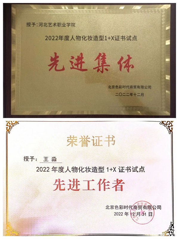 本次活动对提高学生专业妆造风貌、妆造表达能力起到了促进作用,为下一步考取证书奠定了扎实的基础。自2021年我院获批1+X人物化妆造型职业技能等级考核站点以来,时尚表演与传播专业团队严格按照考核站点建设要求积极对接相关工作,多次围绕如何将考核内容与现有课程进行融通进行教研,提高学生实践化妆技能,各项工作取得了明显的效果。2023年1月,学院获评2022年度1+X人物化妆造型证书试点工作“优秀先进集体”,王淼老师获评2022年度1+X人物化妆造型证书试点工作“先进工作者”奖项。