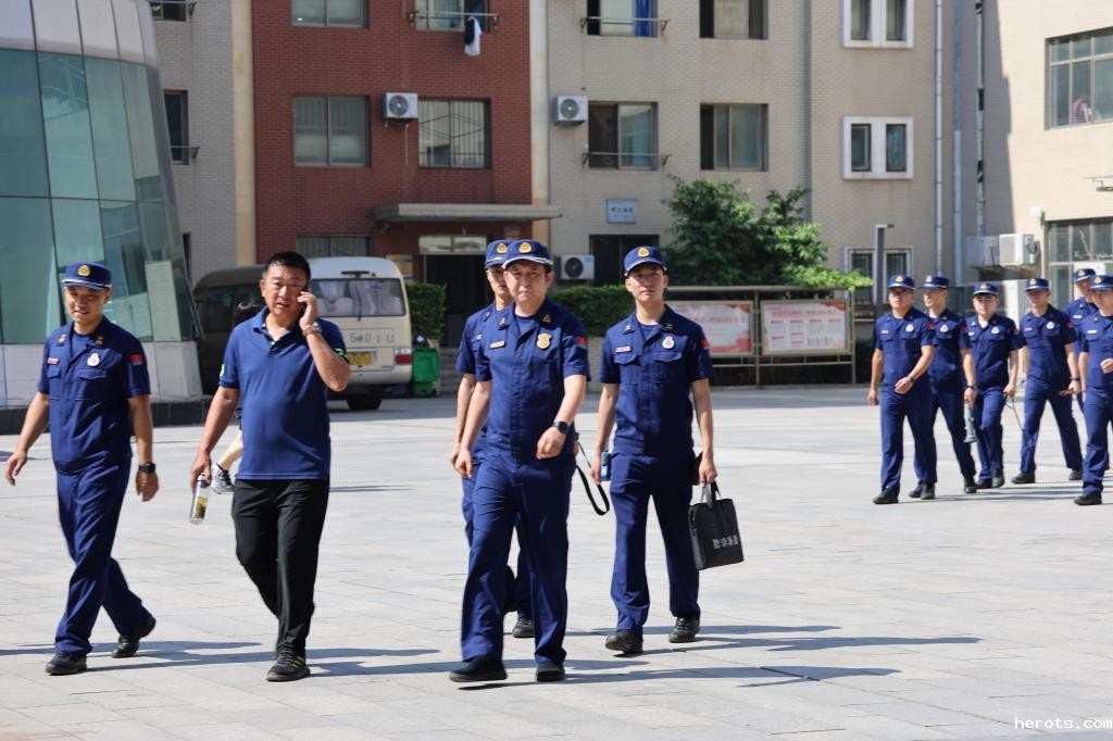 张明泉副院长向槐北路消防站全体指战员介绍了学院的建校历程和发展情况,带领指战员对学院消防控制室、教学楼,琴房、排练楼、公寓和食堂进行了全方位无死角的消防安全检查,并对学院的消防供水系统和楼内灭火设施进行了现场测试。
