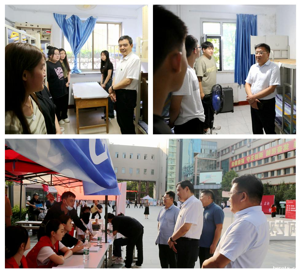 党委书记赵宗更、院长蒋国新等院领导在相关职能部门的陪同下,深入迎新报到现场,详细了解各专业系新生报到情况,慰问参与迎新工作的师生员工,并走进学生宿舍、走到新生中,亲切询问和调研学生对住宿情况等迎新工作的意见和建议,检查、指导迎新工作的开展。
