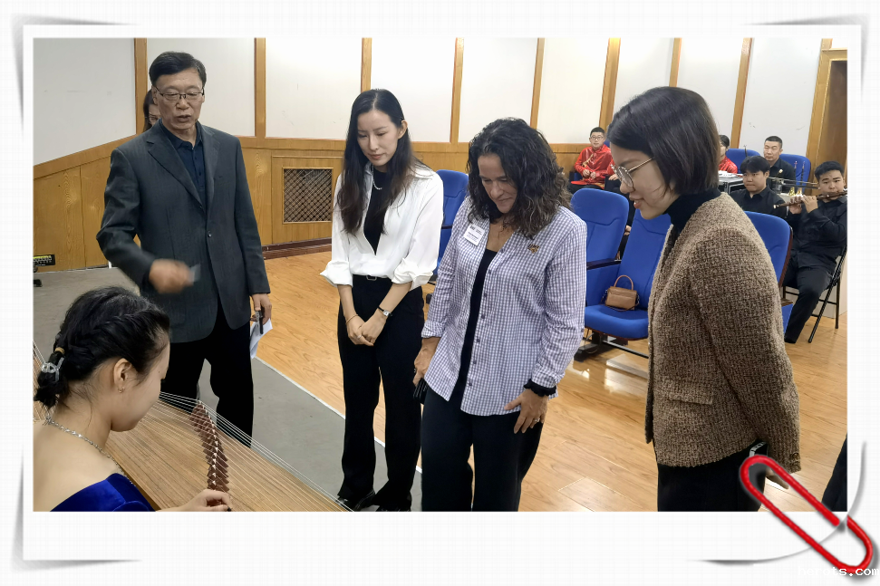 在学院党委委员、社教部主任马海峰等有关部门负责同志的接待下,克里斯汀女士一行了解了我院学科建设与国际化发展等情况,观摩了学院音乐、舞蹈、戏剧系的专业课堂,对同学们的精彩展示给予充分认可。