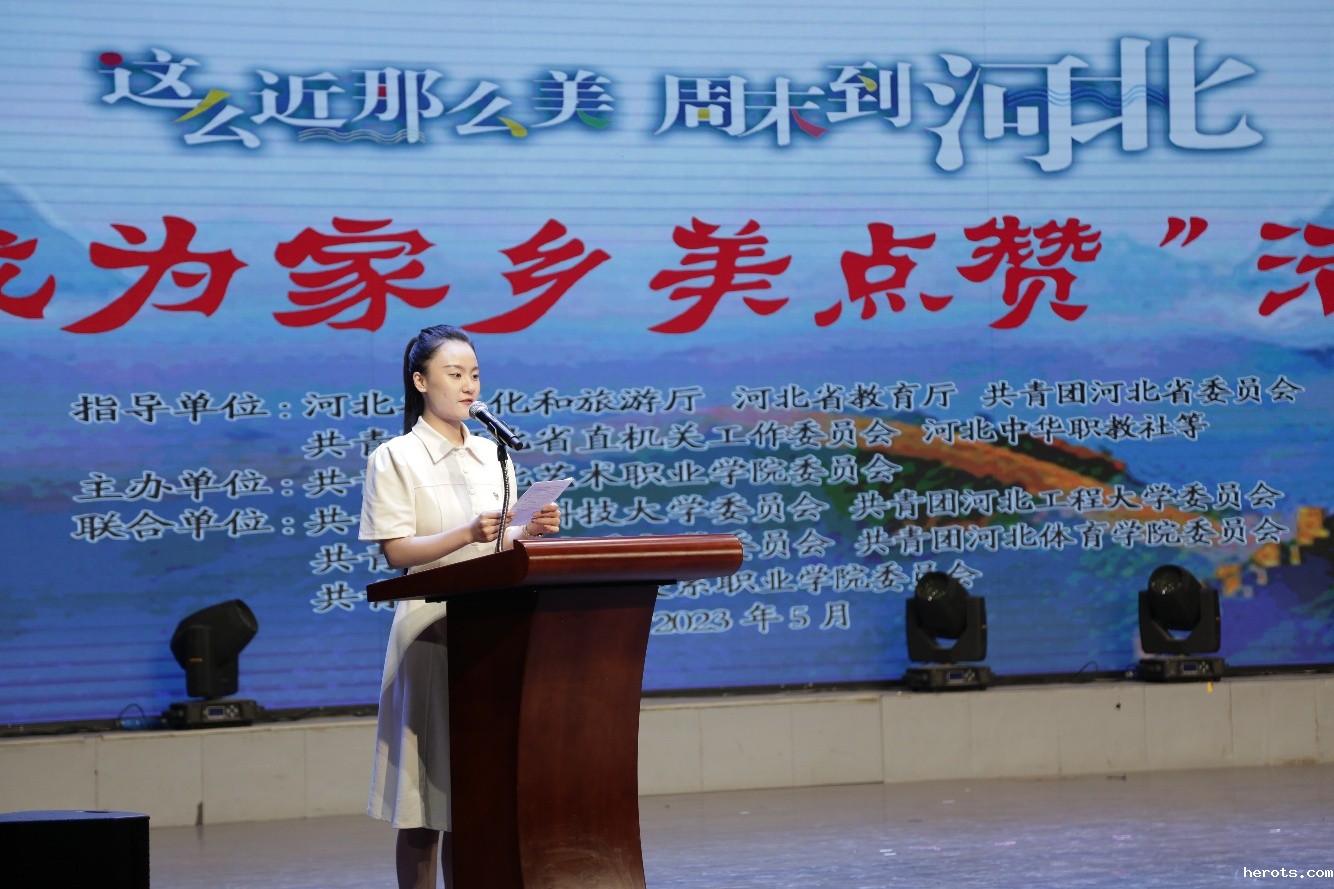 活动现场,18luck快乐彩团委学生副书记、学生会主席,2020 级舞蹈系青年大学生翟卫一代表6所高校的大学生现场向全省百万大学生发出发出“我为家乡美点赞”活动倡议,把活动推向高潮。翟卫一倡议全省广大青年,沿着习近平总书记指引的方向茁壮成长,扛起时代责任,奋力开创全面建设经济强省、美丽河北新局面。她呼吁广大青年师生,通过暑期返回家乡忆变化、重走圣地续精神、深入乡村助振兴、走进一线促发展,在实践中获得知识、提高本领、服务社会。通过了解世情国情省情、社情乡情民情,让奋斗的青春在全面建设社会主义现代化国家河北场景中的火热实践中绽放绚丽之花。