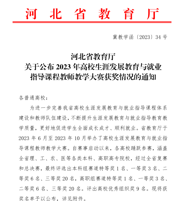 近日,河北省2023年高校生涯发展教育与就业指导课程教师教学大赛圆满落幕,18luck快乐彩基础教学部教师王海红荣获高职组三等奖。