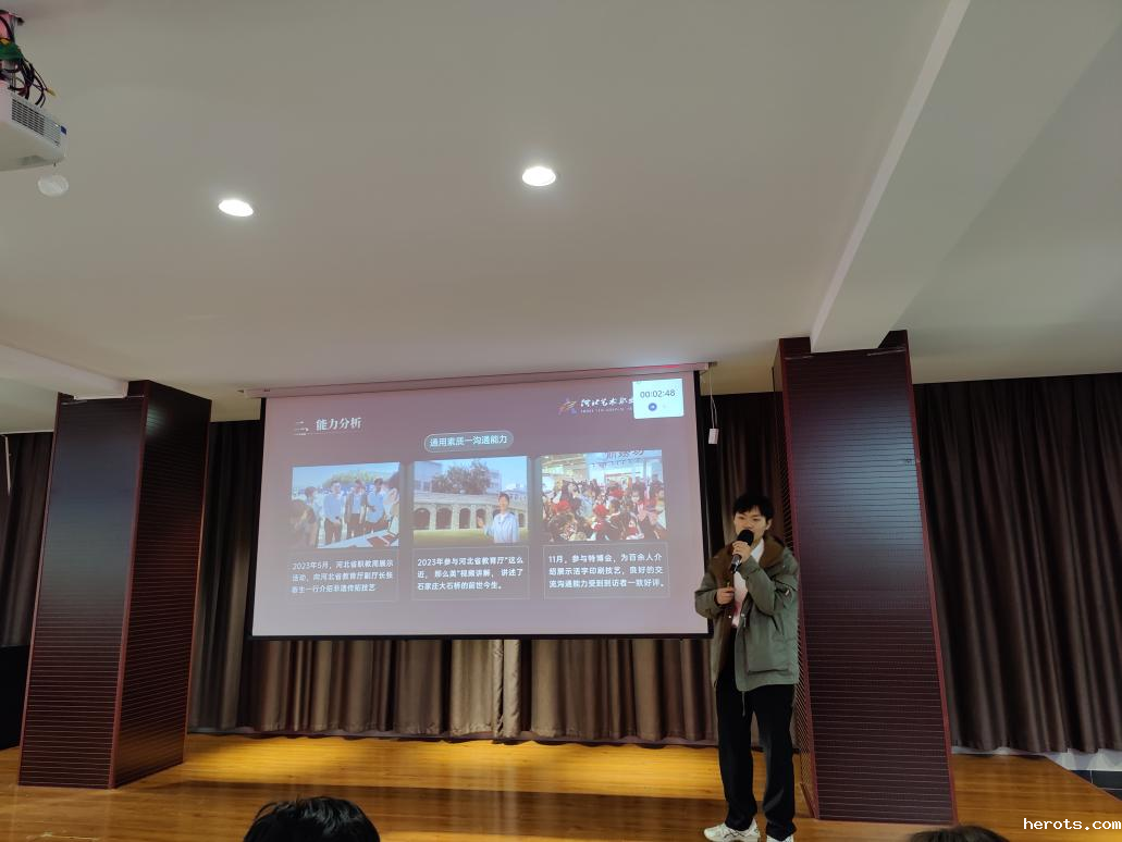 大赛由河北省教育厅主办,河北省教育厅学生就业创业事务中心、河北工业职业技术大学承办,以“逐梦青春志在四方,规划启航职引未来”为主题,吸引了全省100余所高校的31万余位同学参加报名。经过校级初赛、复赛、省级初赛的层层选拔,学院影视系2022级广播影视节目制作专业苏梦涵、文化管理系2021级文物修复与保护专业赵玉根从众多选手中脱颖而出进入省决赛。