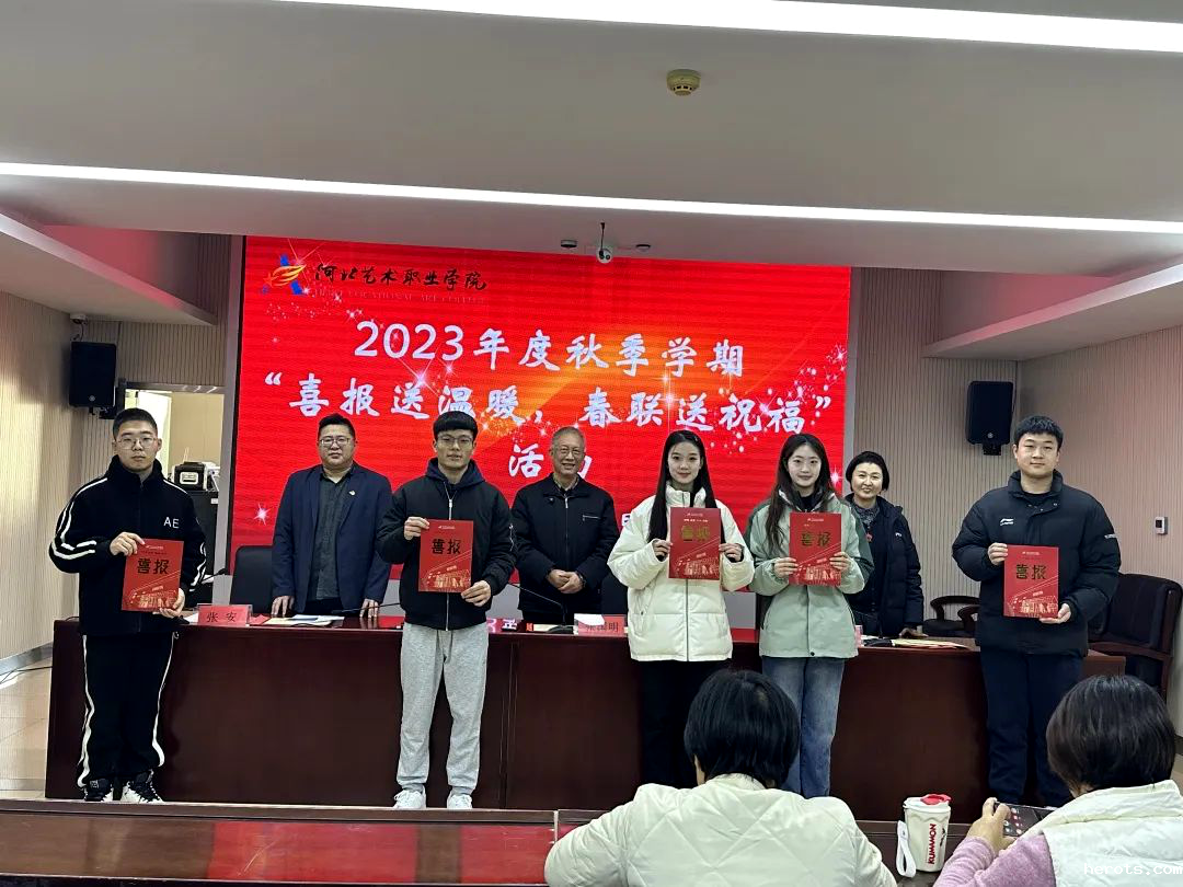 为全面贯彻党的教育方针,牢固树立立德树人工作理念,进一步增强评奖评优学生的荣誉感,深化激励效果,激发学习热情,拓宽育人途径,发挥家校共育合力,12月28日,18luck快乐彩领导为2022—2023学年荣获国家奖学金、校内奖学金、三好学生、优秀学生干部、优秀团干部等900多名获奖学生发放“喜报”,在新春来临之际,为学生家庭报喜,送去祝福。