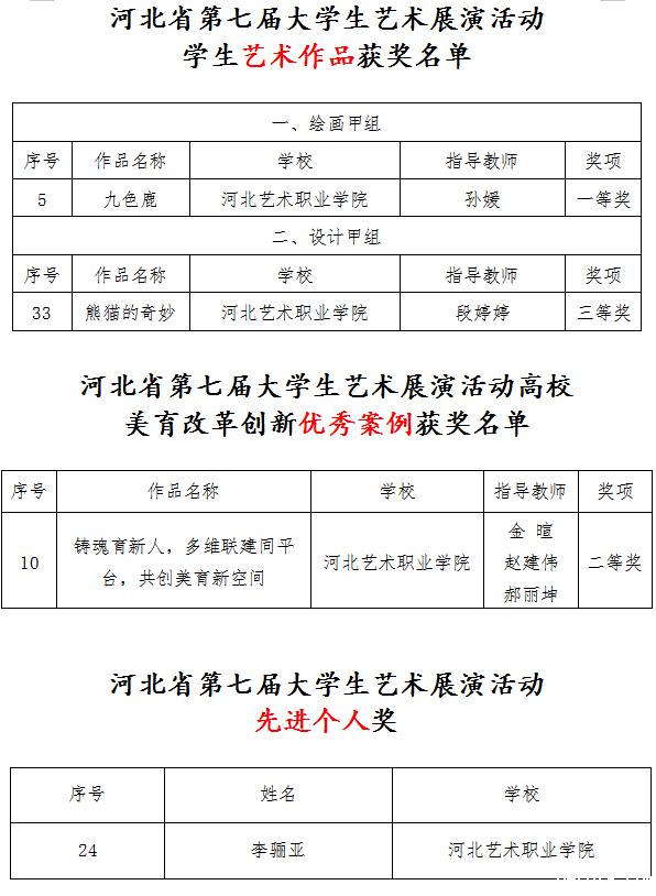 日前,河北省教育厅、团省委联合发文,对河北省第七届大学生艺术展演作品进行表彰。18luck快乐彩师生系列作品喜获优异成绩。