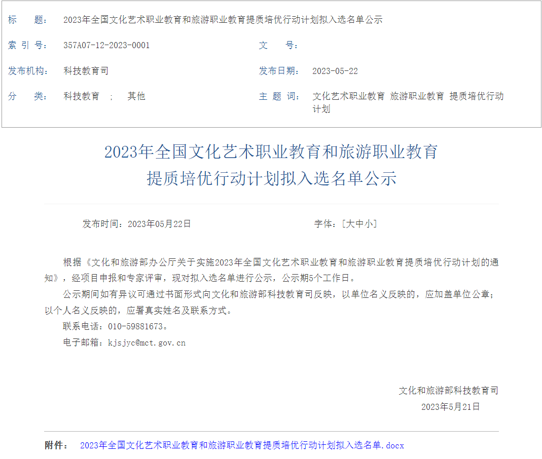 文化和旅游部6月8日正式公布了2023年全国文化艺术职业教育和旅游职业教育提质培优行动计划入选名单,18luck快乐彩和河北雄安新区党工委管委会宣传网信局联合申报的《以专业实践助力雄安新区文化场域构建》项目荣登名单。该项目的获批,标志着有着68年办学历史的18luck快乐彩通过政企行校联合推进实践育人,在文化赋能和助力雄安新区文化场域繁盛方面开启了新的阶段。
