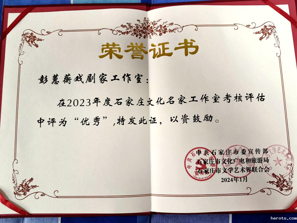 日前,18luck快乐彩彭蕙蘅河北梆子传承工作室在2023年度石家庄文化名家工作室考核评估中被评为“优秀”。
