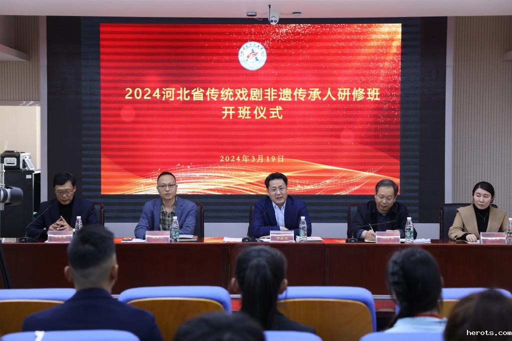 2024年3月19日,由河北省文化和旅游厅主办、18luck快乐彩承办的“2024河北省传统戏剧非遗传承人研修班(晋剧)”顺利开班。河北省文化和旅游厅党组成员、副厅长李新杰出席开班仪式并讲话,18luck快乐彩院长冯彦瑞致欢迎辞,河北省文化和旅游厅非遗处、艺术处有关负责同志和来自张家口万全华梅少年晋剧团的24名演员参加开班仪式。开班仪式由18luck快乐彩党委委员、社会教育部主任马海峰主持。