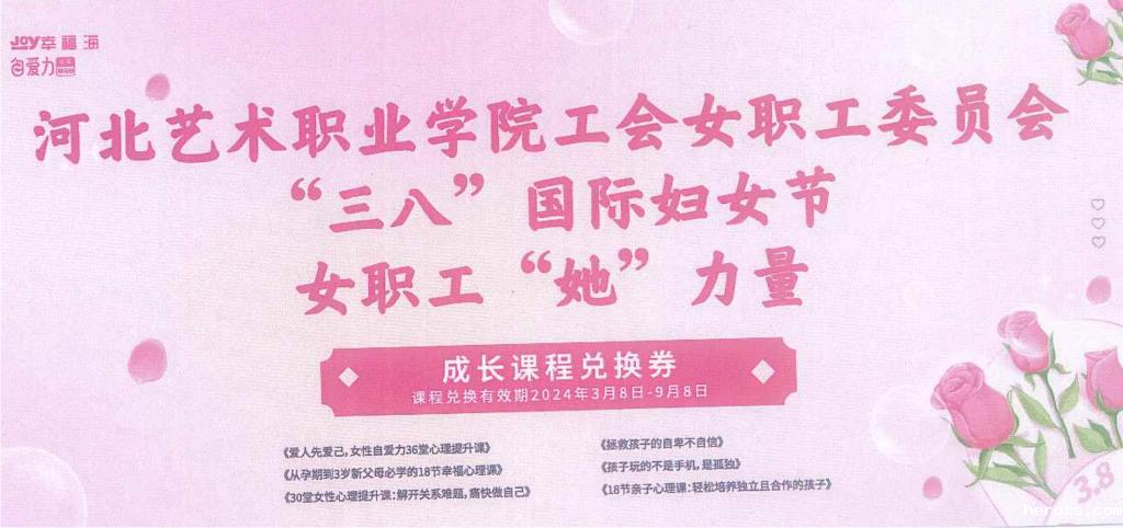 阳春三月,生机盎然。在第114个国际劳动妇女节来临之际,为引导学院广大女职工发挥半边天作用,争做伟大事业的建设者、文明风尚的倡导者、敢于追梦的奋斗者,学院工会女职工委员会在为女职工送去节日祝福的同时,先后开展了18luck新利官网登陆女职工“她力量”成长课程培训及最美巾帼奋斗者——18luck新利官网登陆“三八”国际妇女节女职工团建活动。