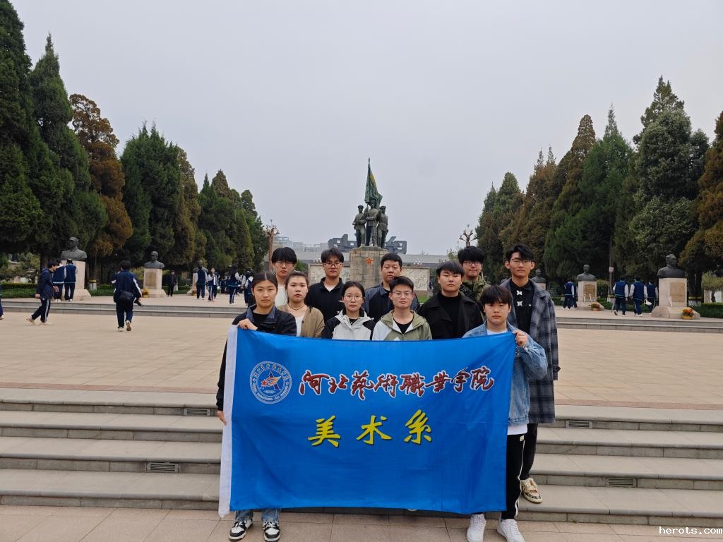 美术系师生怀着崇敬的心情走进华北军区烈士陵园,“为国牺牲永垂不朽”八个大字映入眼帘。该陵园是为了纪念抗日战争、解放战争时期牺牲在华北大地的革命烈士而修建的,园内安葬着马本斋、周建屏、常德善等318位团职以上的革命烈士,国际主义战士白求恩和柯棣华均安葬于此。