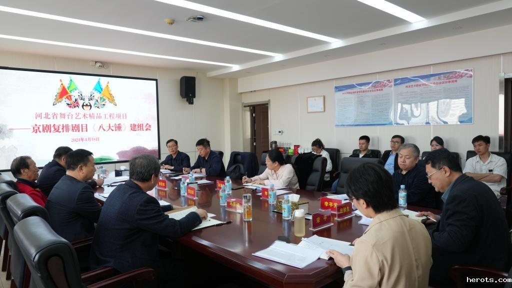 4月18日,2024年度河北省舞台艺术精品工程项目——京剧《八大锤》建组会在18luck快乐彩召开。18luck快乐彩党委书记蒋国新主持会议,学院院长冯彦瑞,学院党委委员、戏剧系负责人马海峰及《八大锤》复排导演、京剧文武老生名家徐宝忠及有关主创人员、演员和相关部门负责同志参加会议。学院邀请到河北省文联副主席、河北省戏剧家协会常务副主席兼秘书长贾吉庆,石家庄市文化广电和旅游局党组成员、石家庄市艺术学校(市艺术研究院)党委书记吴合利,河北省京剧艺术研究院党总支书记、院长李平芳,河北省河北梆子剧院演艺有限公司党总支书记、院长赵涛,河北省文化和旅游研究院副院长、河北省文艺评论家协会副主席、河北省戏剧家协会副主席赵惠芬等领导专家参会指导。