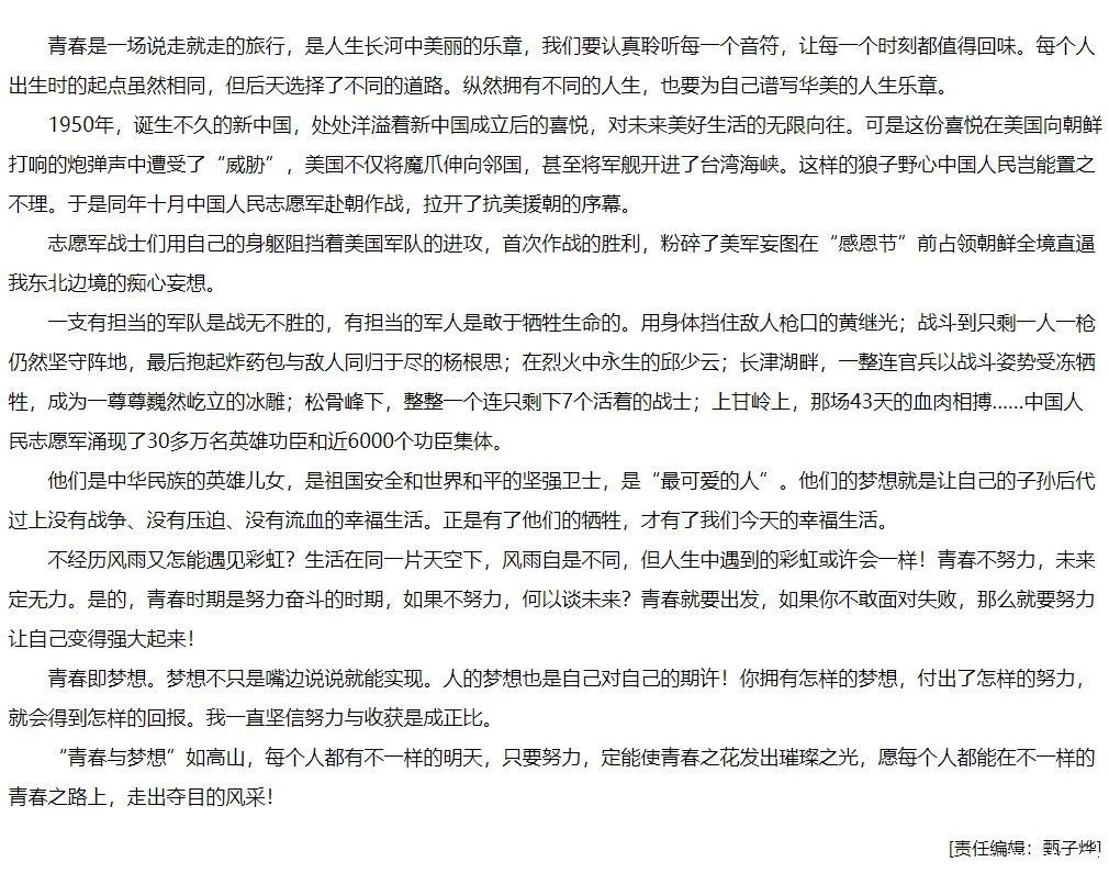 刊登作品为“不一样的青春, 一样的梦想”主题征文作品,由中共河北省委宣传部、河北省教育厅指导,中共河北省委 《共产党员》杂志社承办。在我省组织开展优秀主旋律电影进校园活动的同时,河北共产党员网开设相关征文专题页面择优对作品进行发布。以下是《重任在肩 拥抱希望》作品全文:
