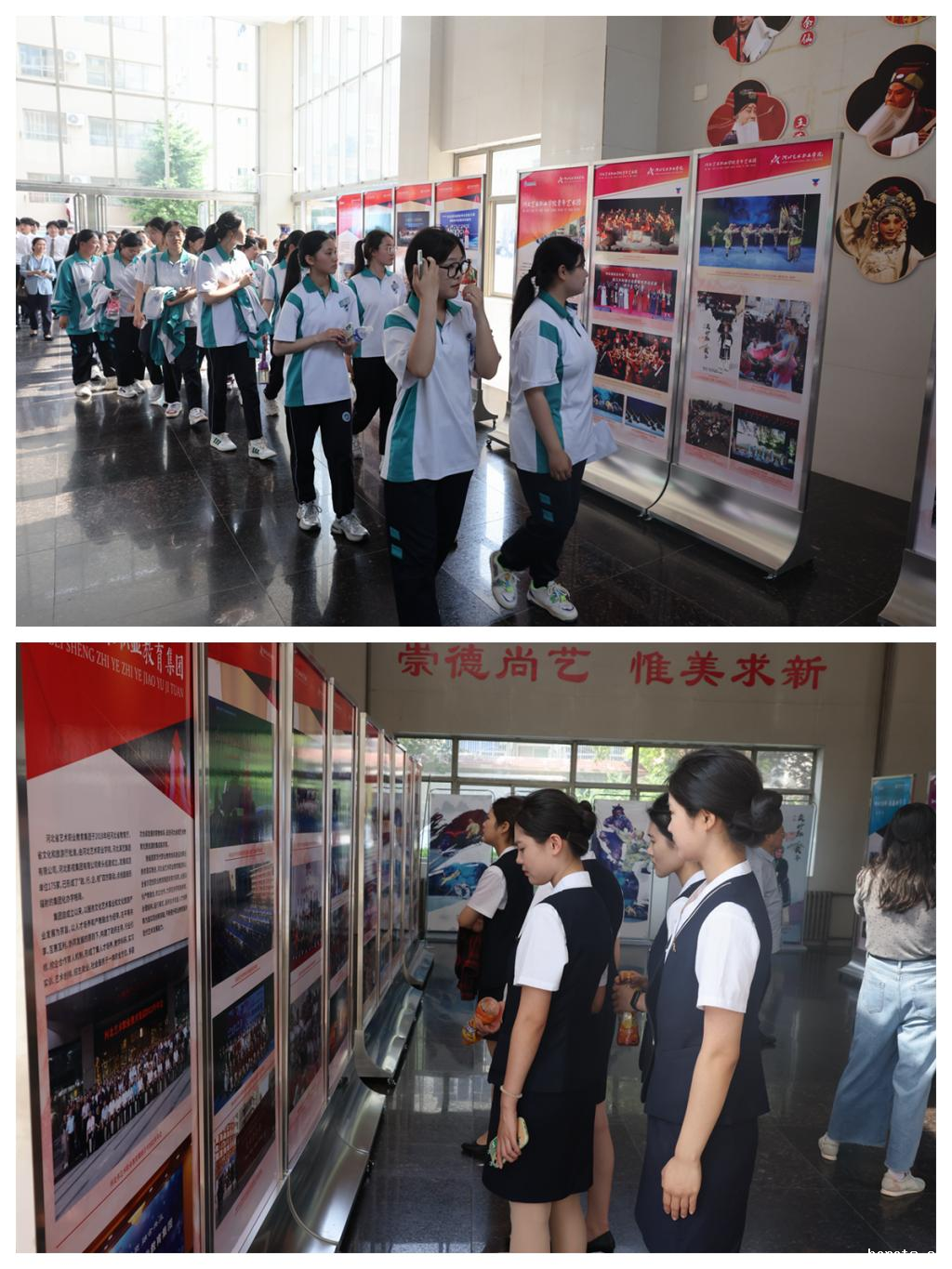 河北经济管理学校、石家庄工程技术学校2024年“3+2”即将转段到我院的中职学生代表观摩了签约仪式,并参观和体验了开放日中其他校园活动。在学院为本次开放日专题筹划的办学成果展览中,琳琅满目的近百张教学改革成果照片,全方位展现了我院近年来教育发展成果和各专业系师生风采,专门呈现的河北省艺术职业教育集团和18luck新利官网登陆青年艺术团展板也吸引了不少同学神情专注地驻足参观。