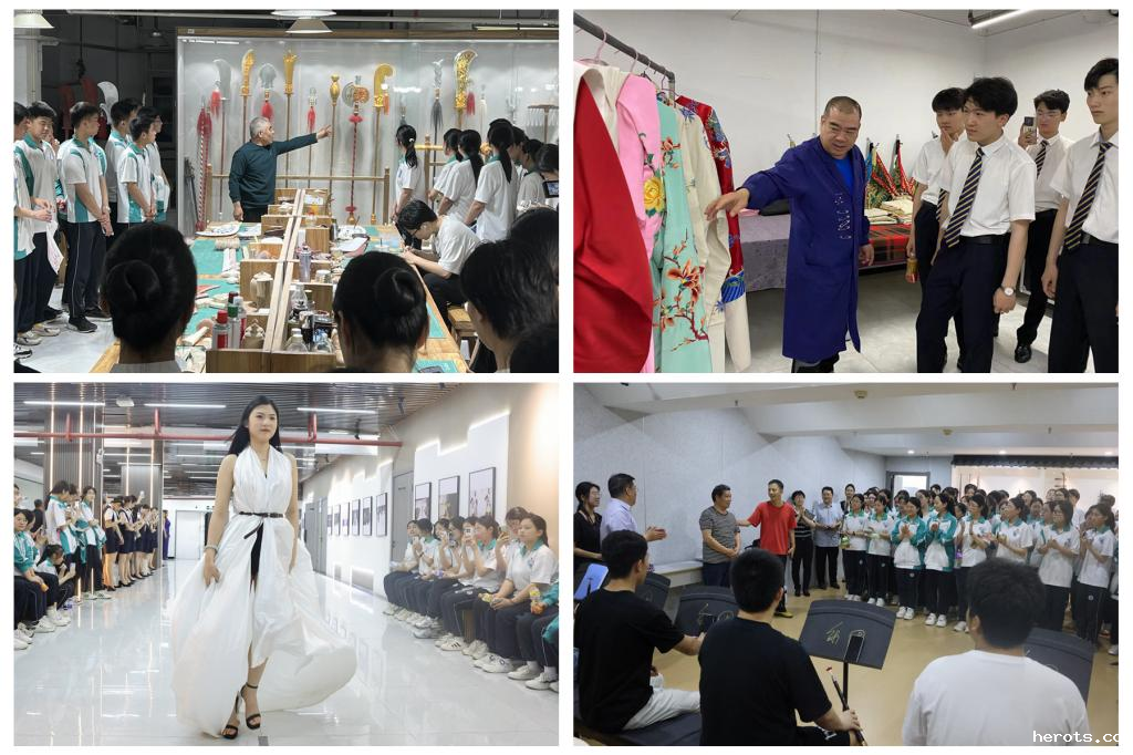 一技在手,一生无忧。漫步18luck新利官网登陆校园,师生代表欣赏了18luck新利官网登陆时空展厅推出的书籍设计结课展览,在学院演艺创新中心大厅区域沉浸式体验了拓画技艺,观看了学院时尚传播与模特专业带来的模特展,聆听了休门吹歌现场课程展示,还参观了河北省戏曲非遗传承科普教育基地,观看道具制作过程,走进道具室、服装室和化妆室感受学院戏曲非遗特色。