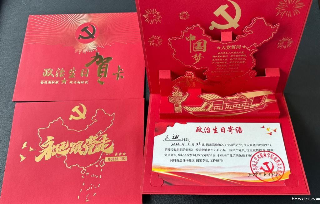 活动在庄严的歌曲《我宣誓》中开始。党员们在李莉媛副书记的带领下,面向鲜红的党旗,庄重地重温了入党誓词。誓言声铿锵有力,回荡在会场,让每一位党员都深感自己肩负的责任与使命。随后,党支部为上半年入党的党员送上精心制作的“政治生日”贺卡,卡上印有入党时间、入党誓词以及党组织的温馨祝福。收到贺卡的党员们纷纷表示,这不仅是一份礼物,更是一份沉甸甸的责任与担当。