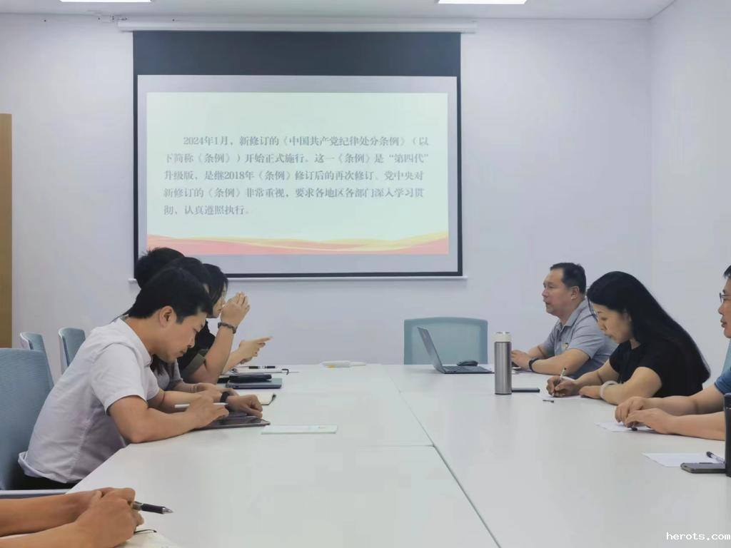 6月26日,18luck快乐彩思政教学部党支部与中国雄安集团公共服务管理有限公司第一党支部组织开展校地党建共建活动,以“学习中国共产党纪律处分条例”为主题开展了学习交流研讨。中国雄安集团公共服务管理有限公司副总经理张岩磊、文体运营事业部部长刘志远、运营事业部部长高丽媛,公司第一党支部第二党小组、第六党小组、第八党小组的党员与思政部全体党员教师共同参加活动。