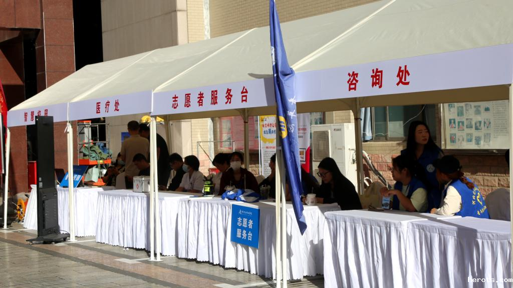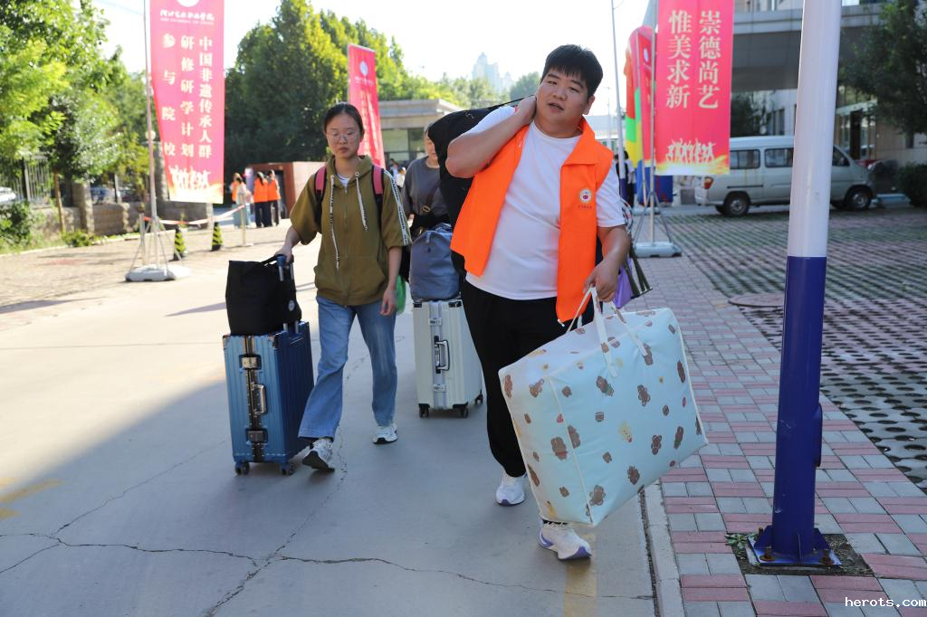 大院里,身着红、蓝、黄马甲的校学生会、青协、自律委员会的志愿者们高举引导牌,“一对一”“点对点”为新同学们答疑解惑,热情地帮助新手和家长提行李、作导航,带领大家有序办理报到手续。