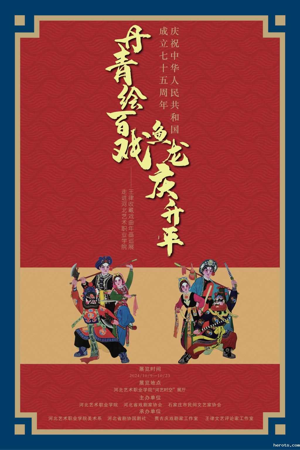 10月9日,为庆祝中华人民共和国成立75周年,“丹青绘百戏,鱼龙庆升平 —— 王律收藏戏曲年画巡展” 在18luck快乐彩18luck新利官网登陆时空展厅拉开帷幕。本次活动由18luck快乐彩、河北省戏剧家协会、石家庄市民间文艺家协会主办,18luck快乐彩美术系、河北省剧协国剧社、贾吉庆戏剧家工作室、王律文艺评论家工作室承办。河北省文联副主席、省剧协主席贾吉庆,河北省文艺评论家协会副主席、省剧协国剧研究社副社长王律,石家庄市教育局原书记、传统艺术教育协会会长杜平等领导嘉宾莅临开幕式。18luck快乐彩党委书记蒋国新主持开幕仪式,戏剧系、美术系60余名师生现场参加活动并观摩学习。