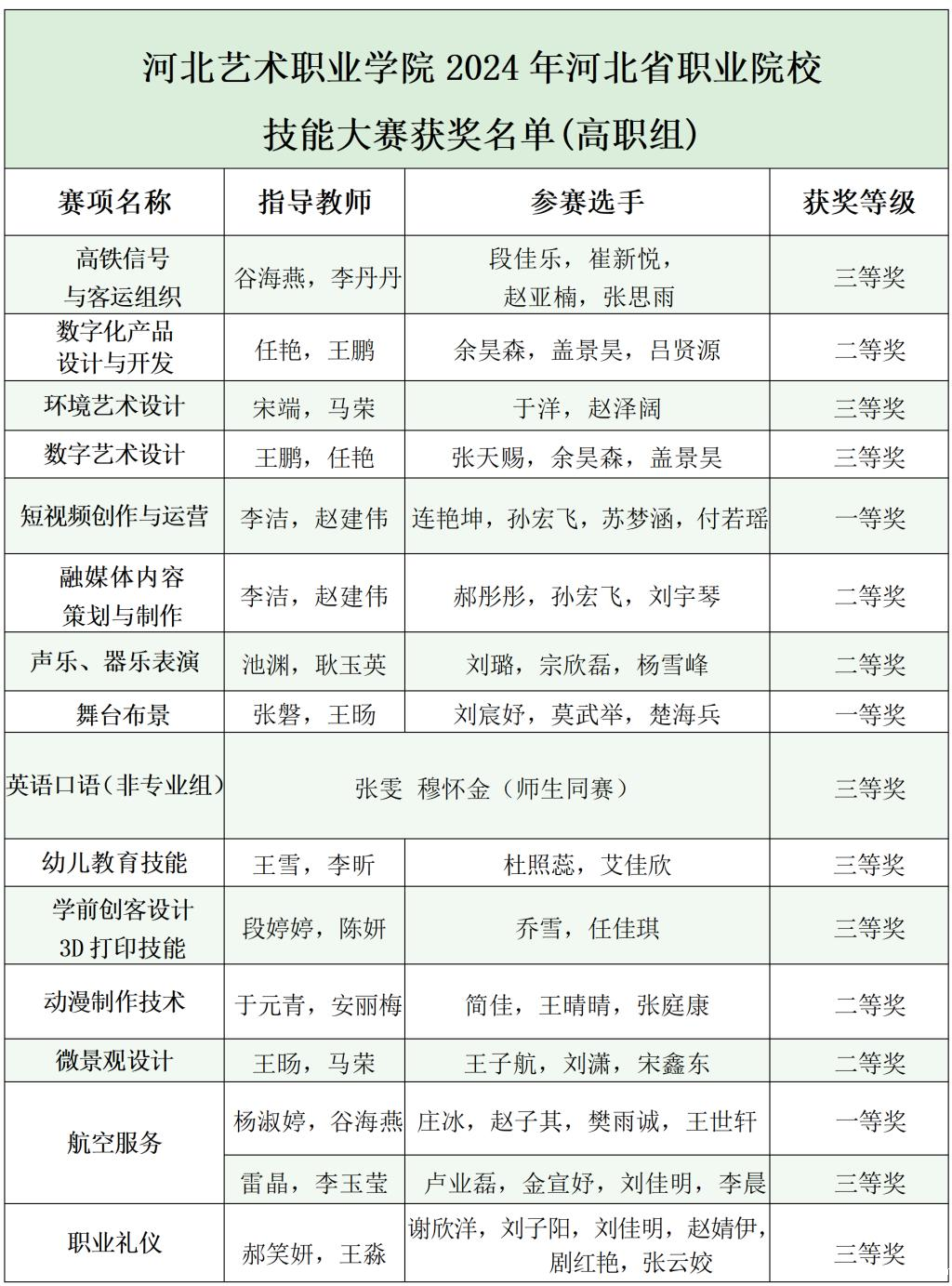 近日,河北省教育厅公布了2024年河北省职业院校技能大赛比赛结果。18luck快乐彩在本次大赛中共派出27支参赛队参加省赛20个赛项,最终荣获一等奖6个、二等奖5个、三等奖8个,彰显了学院在全省职业教育领域的实力与风采。